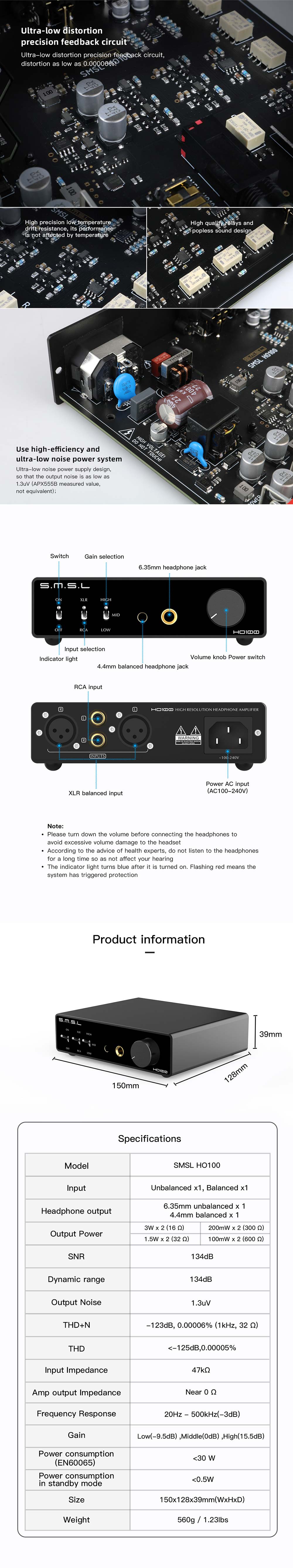 The headphone amplifier has DC,comprehensive protection such as overvoltage and thermal protection;