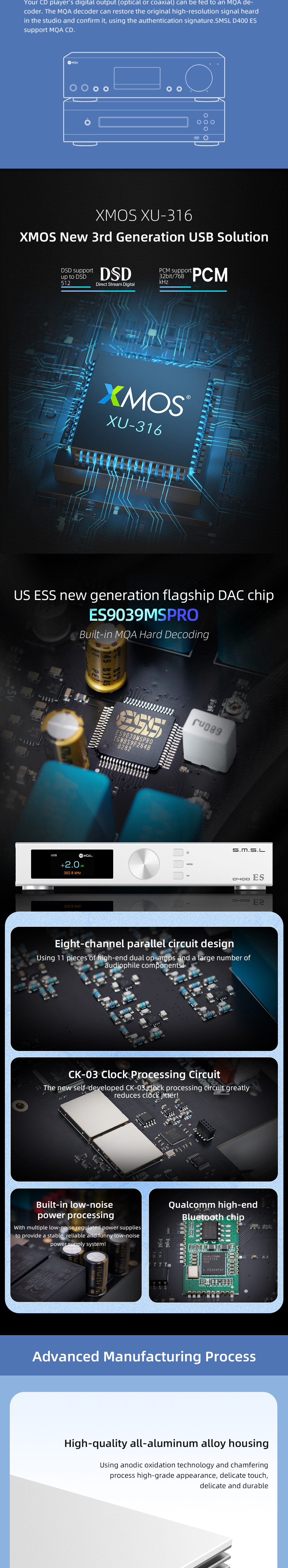 The new generation flagship DAC chip ES9039MSPRO of USA ESS has built-in MQA hard decoding;
