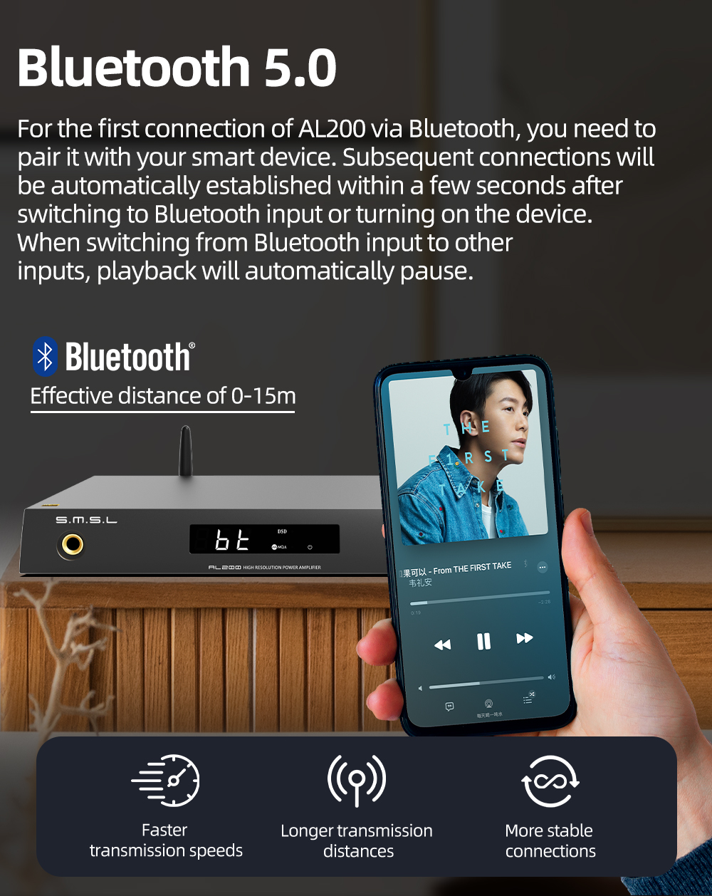 Bluetooth 5.0 reception, longer transmission distance, better sound quality!