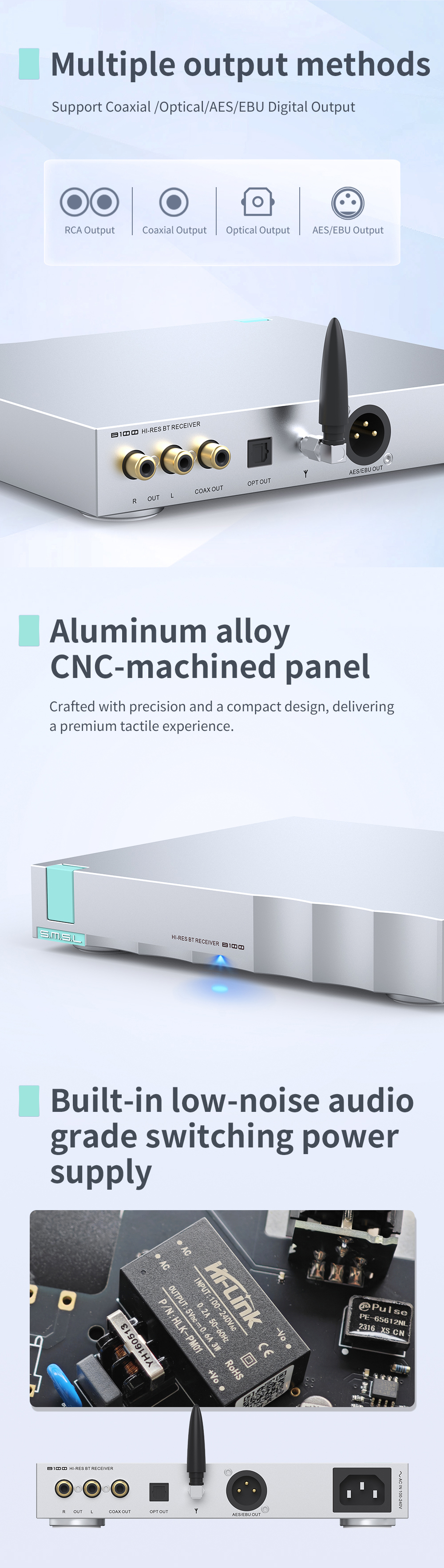 Supports coaxial, optical, and AES/EBU digital outputs.