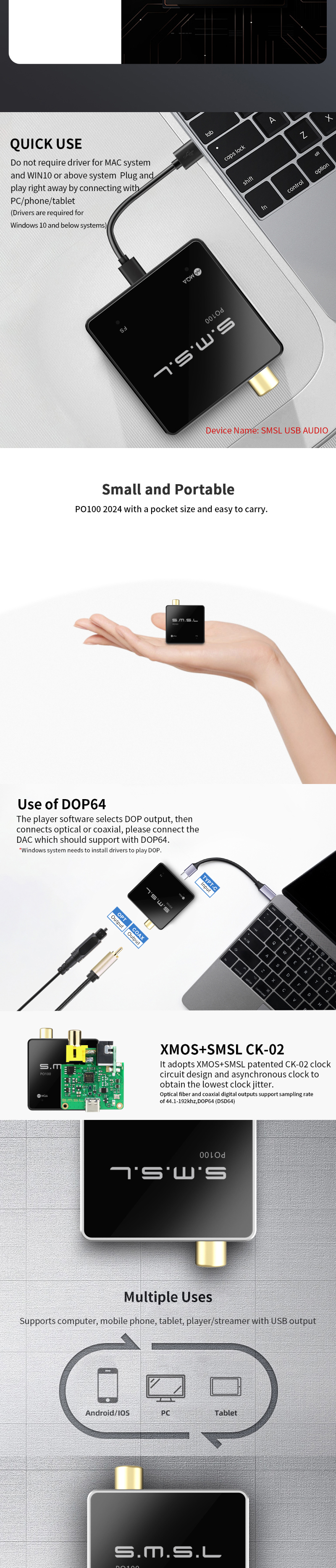 P0100 is an ultra compact USB digital audio interface. lt adopts XMOS design.