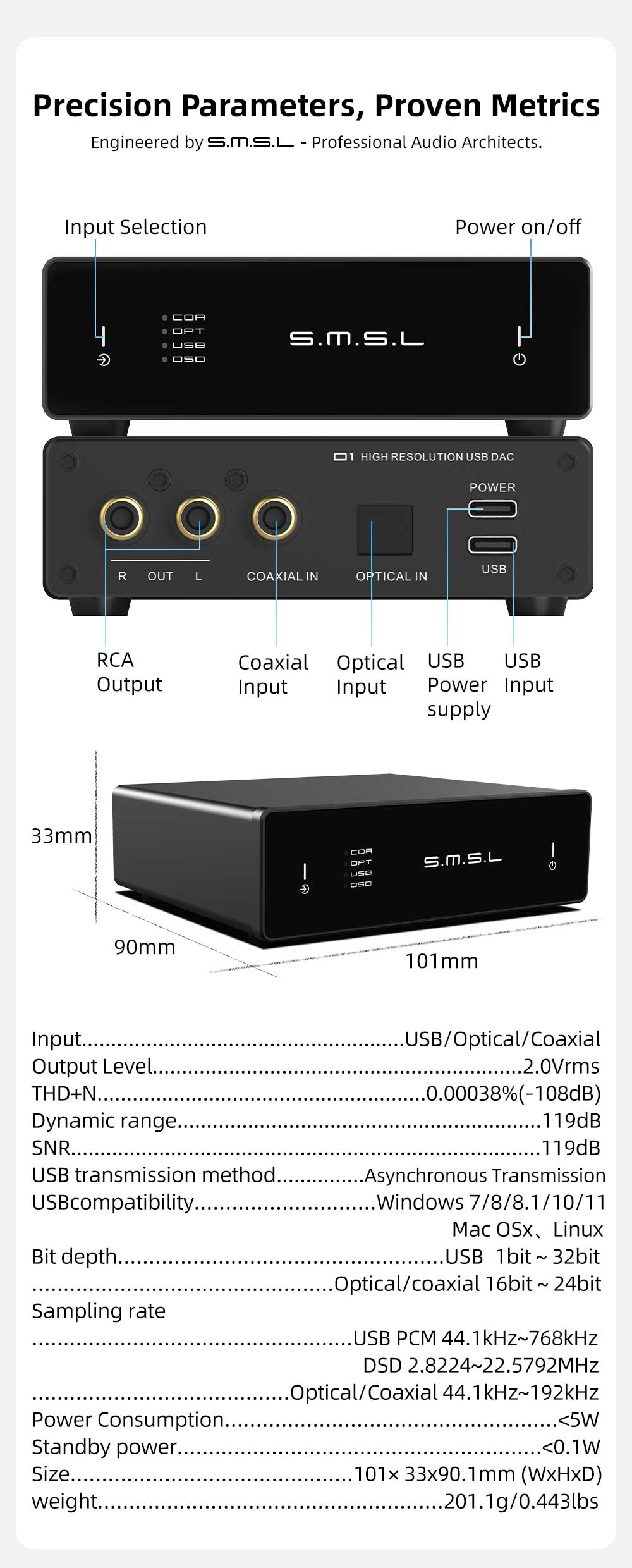 Support optical, coaxial input, maximum support to24bit/192kHz;.